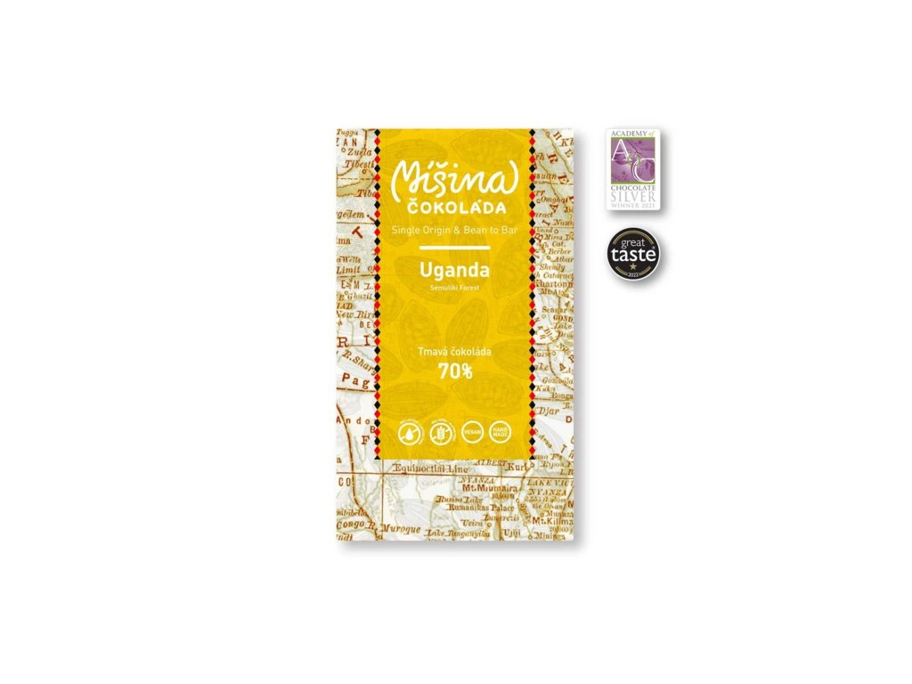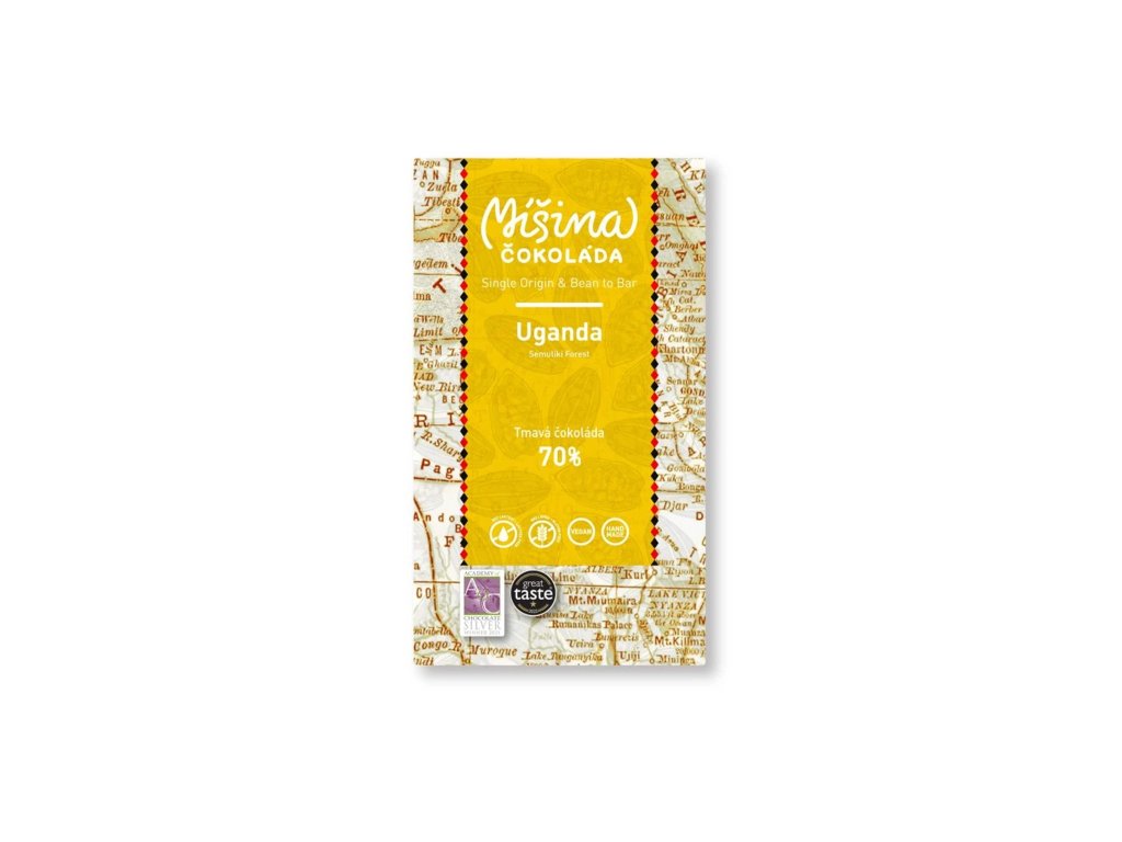 Tmavá čokoláda z výběrových organických kakaových bobů z oblasti Semuliki Forest v Ugandě. Jedná se o sdružení 1000 malých farmářů, kakaové boby jsou centrálně fermentovány 6-7 dní a sušeny na slunci 6-8 dní.